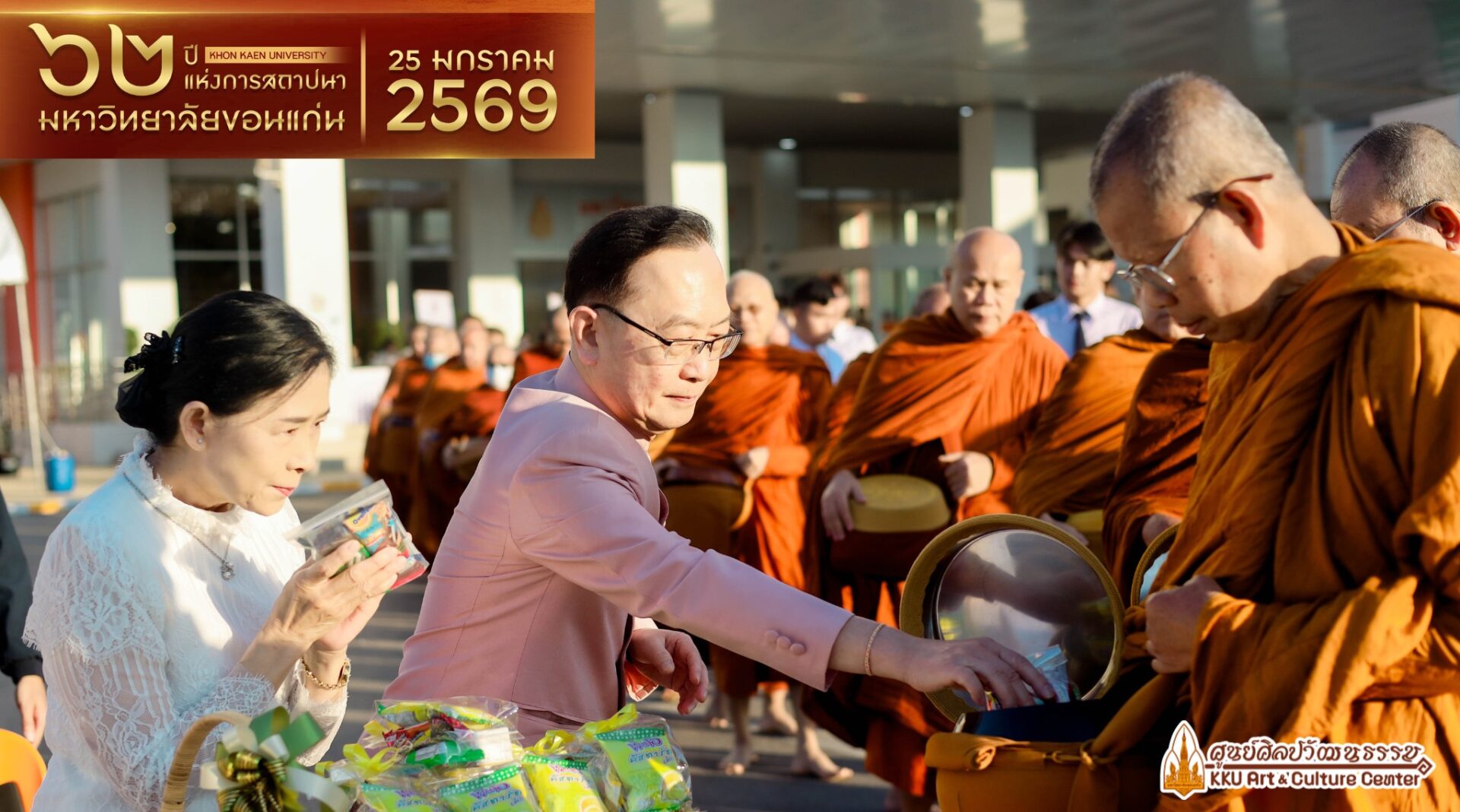 เมื่อวันอาทิตย์ที่ ๒๕ มกราคม ๒๕๖๙ มหาวิทยาลัยขอนแก่น ได้จัดพิธีทำบุญตักบาตร เจริญพระพุทธมนต์ และพิธีทอดผ้าป่าเพื่อการศึกษา ภายใต้โครงการ “พี่ให้น้อง กองละ ๑,๐๐๐ บาท” เนื่องในโอกาสวันคล้ายวันสถาปนามหาวิทยาลัยขอนแก่น ครบรอบ ๖๒ ปี เพื่อความเป็นสิริมงคลแก่สถาบัน และเพื่อส่งเสริมโอกาสทางการศึกษาแก่นักศึกษามหาวิทยาลัยขอนแก่น